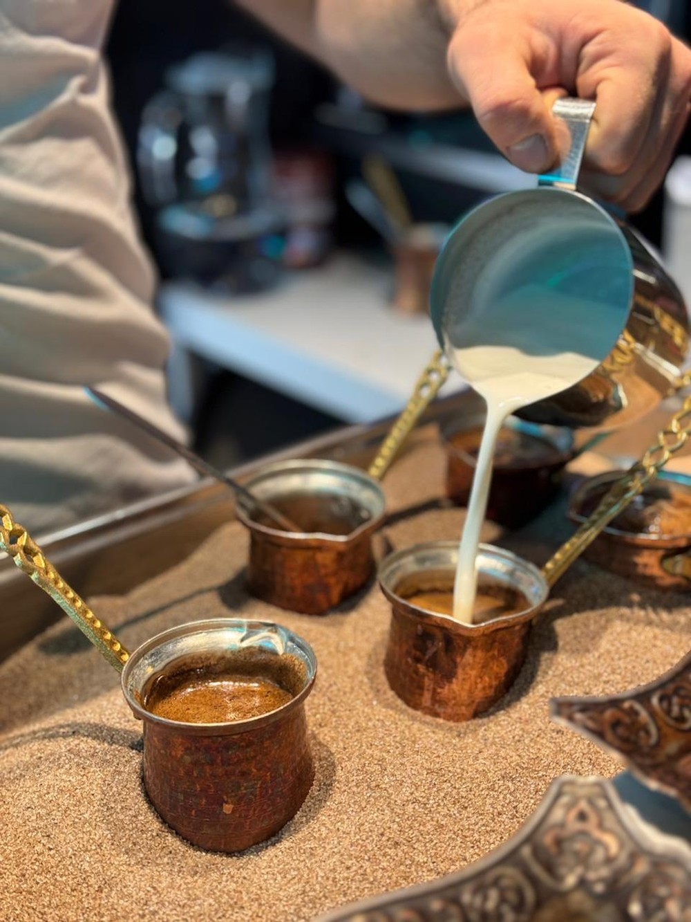 Попробовать кофе на песке, с халвой и с фундуком, лавандовый раф и леччезе с марципаном